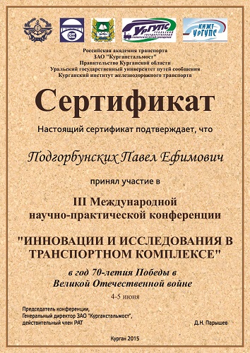 4-5 июня 2015 года в г. Кургане состоялась III международная научно-практическая конференция "Инновации и исследования в транспортном комплексе"